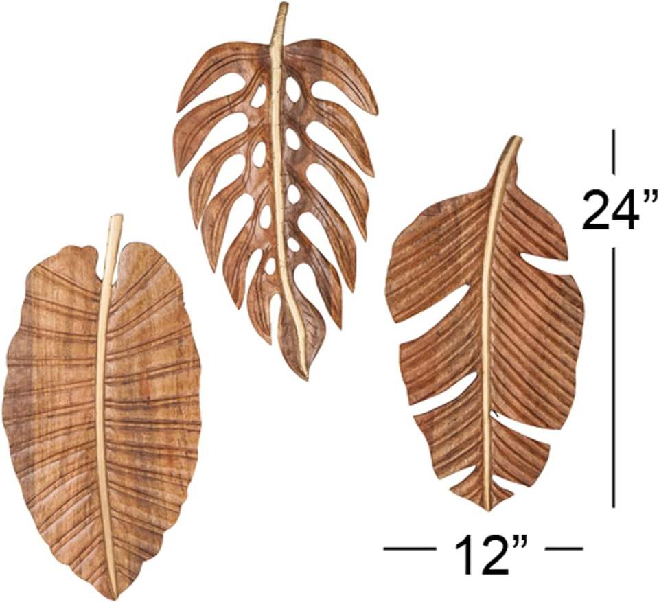 Mango Wood Leaf Handmade Carved Wall Decor Set of 3 24" W, 12" H Brown