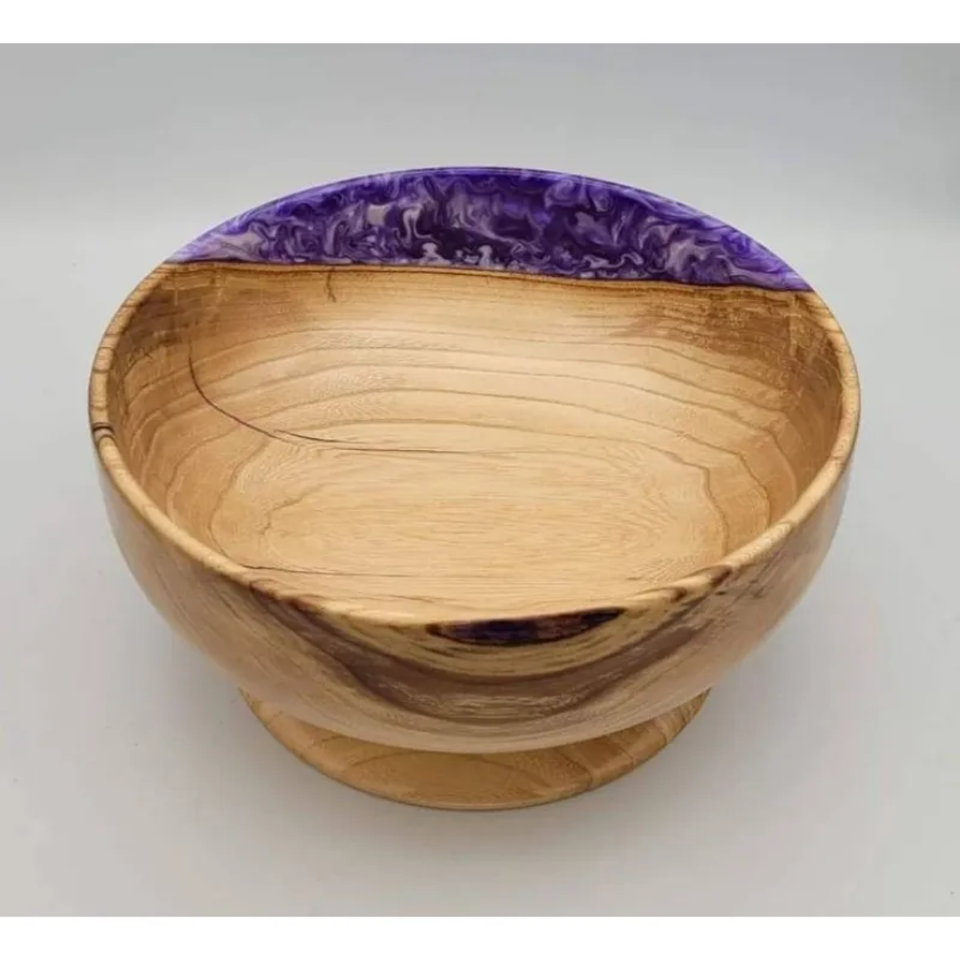 Mango Wood & Resin Design Polished Wooden Serving Bowl with Spoon Eco-Friendly for Wedding Home Hotel & Restaurant Use