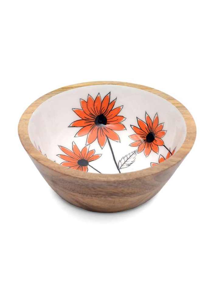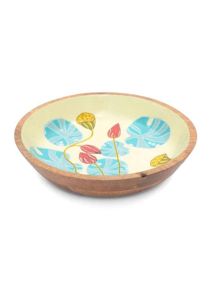 Mango Wood Round Vintage Enamel Resin Wooden Salad Bowls