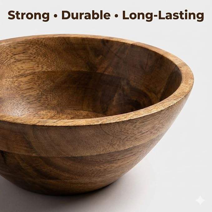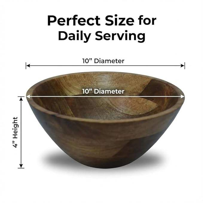 Mango Wood Salad Bowl Large Hardwood Salad Bowl with Servers Premium Wooden Bowl for Fruits Salads & Serving