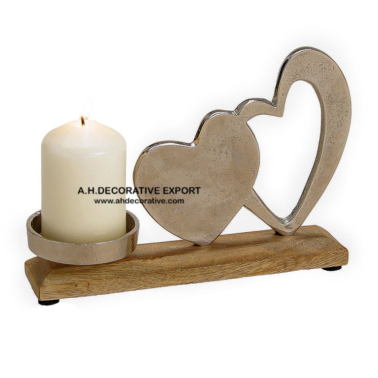 Mango Wood Tea Light Candle Holder Heart Shape Home Decorative Wood T-Light Candle Holder for Living Room