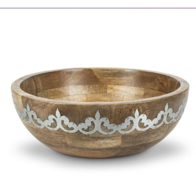 Mango Wooden Food Serving Bowl With Metal Base Round Shape for Dining Table Decorative Salad and Soup Serving Bowls