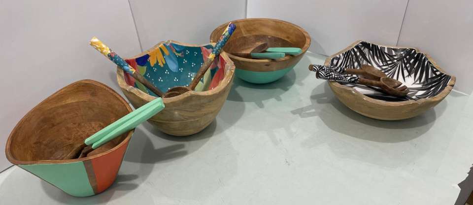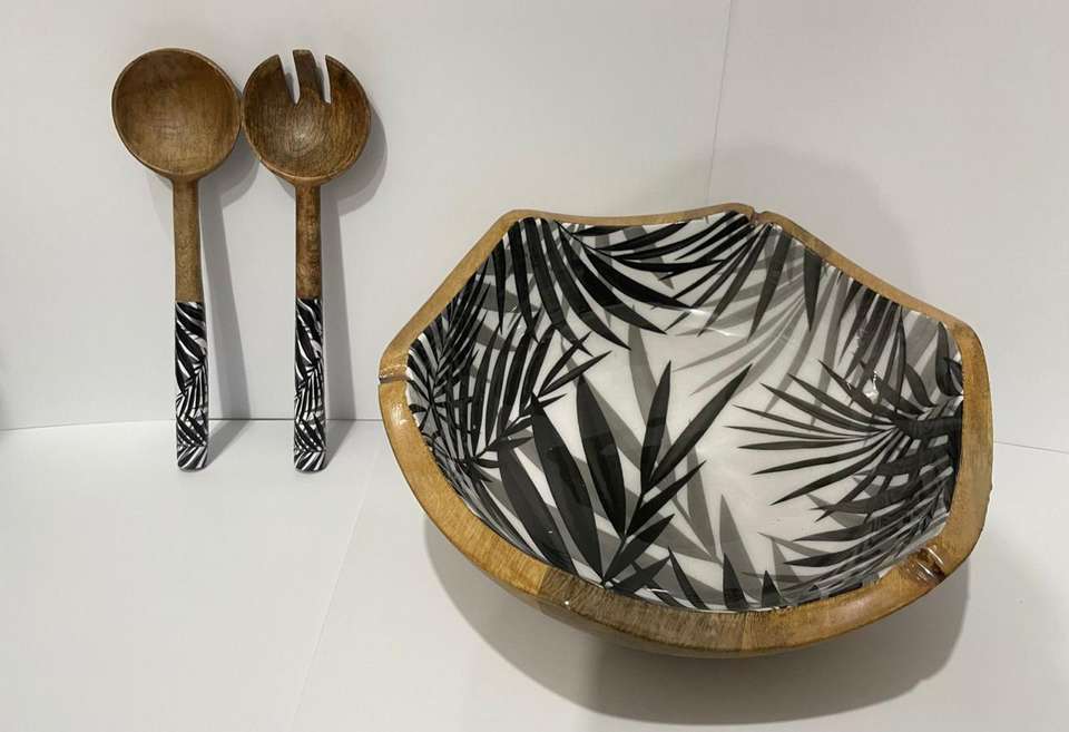 Mango wood serving bowl enamel leaf design inside perfect for serving fruits snacks or adding charm to your table decor spruce