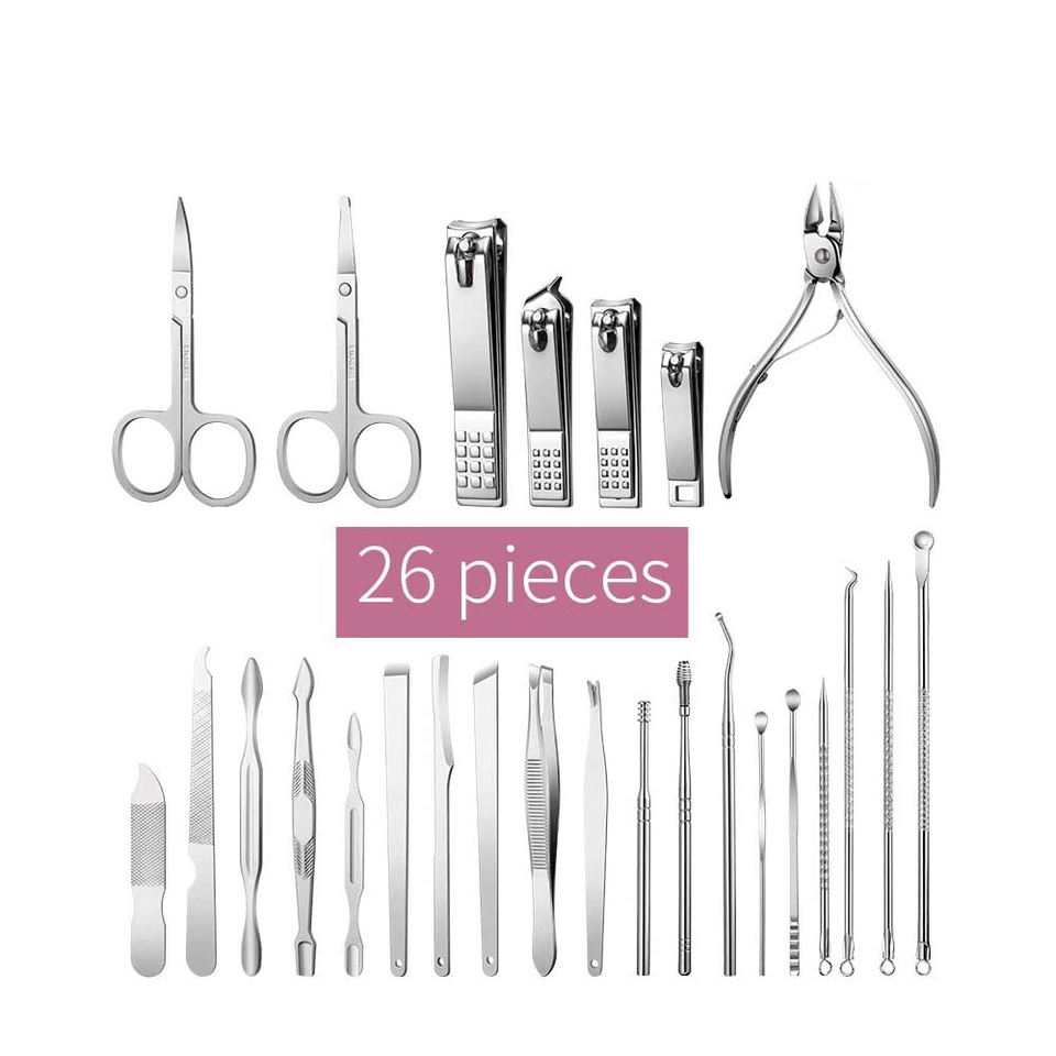 Stainless Steel Manicure & Pedicure Set Nail Clippers Cuticle Nipper Dead Skin Scissor Cleaning Grooming Kit