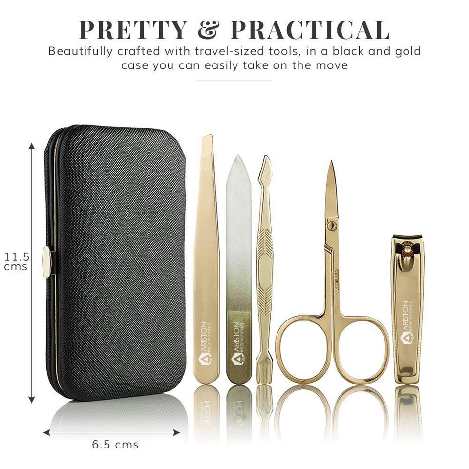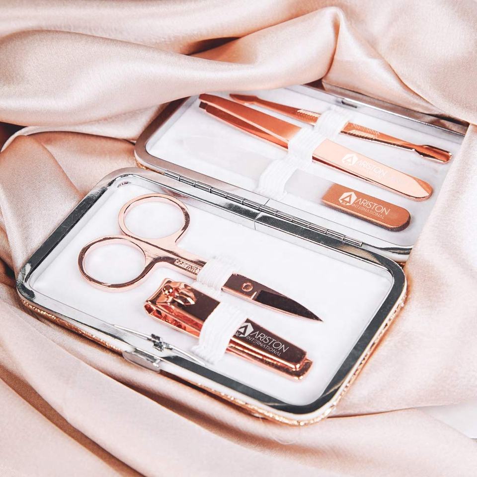 Professional Stainless Steel Manicure Pedicure Kit for Women Girls Luxury Travel Case Rose Gold/Black Finish Personal Care Tools