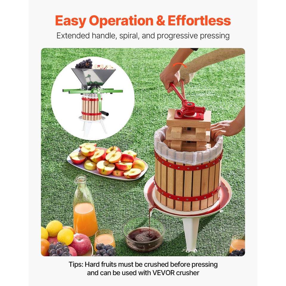 Manual Fruit Wine Press 3.2 Gal/12L Wood Basket for Wine Making Fermenting Equipment