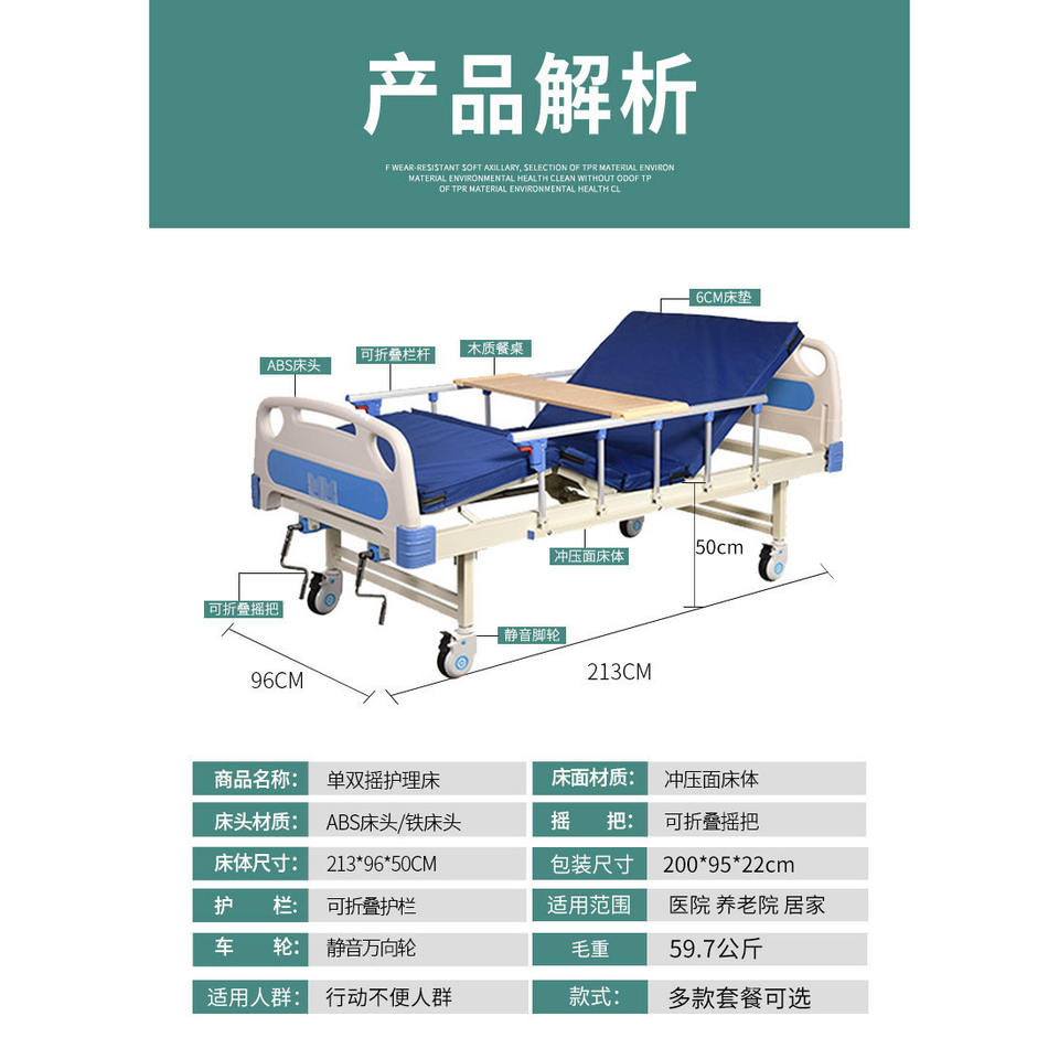 Manual Nursing Bed Single Double Rocking Care Bed For Disabled People Hospital Use
