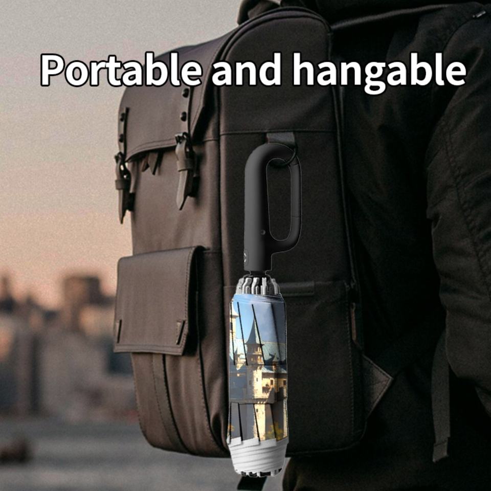 Manual Open Close Compact Inverted Umbrella Carrying Case Iron Frame Glass Fiber Ribs Portable Windproof Travel Folding Umbrella