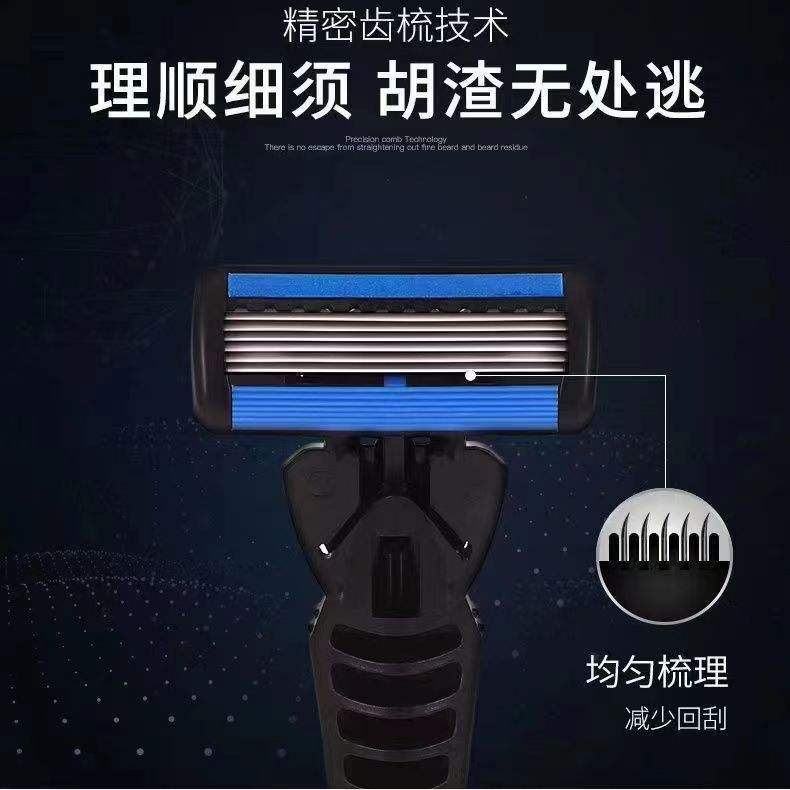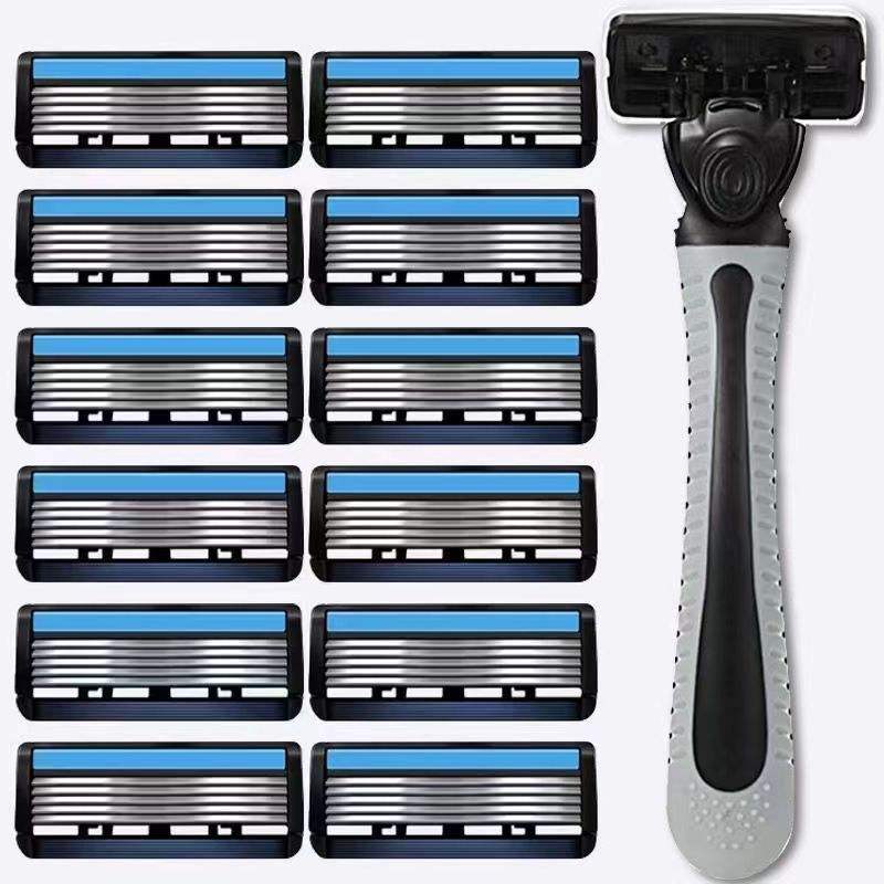 Manual Razor 6 Blade Stainless Steel For Men Face Shaving Replacement Heads Black
