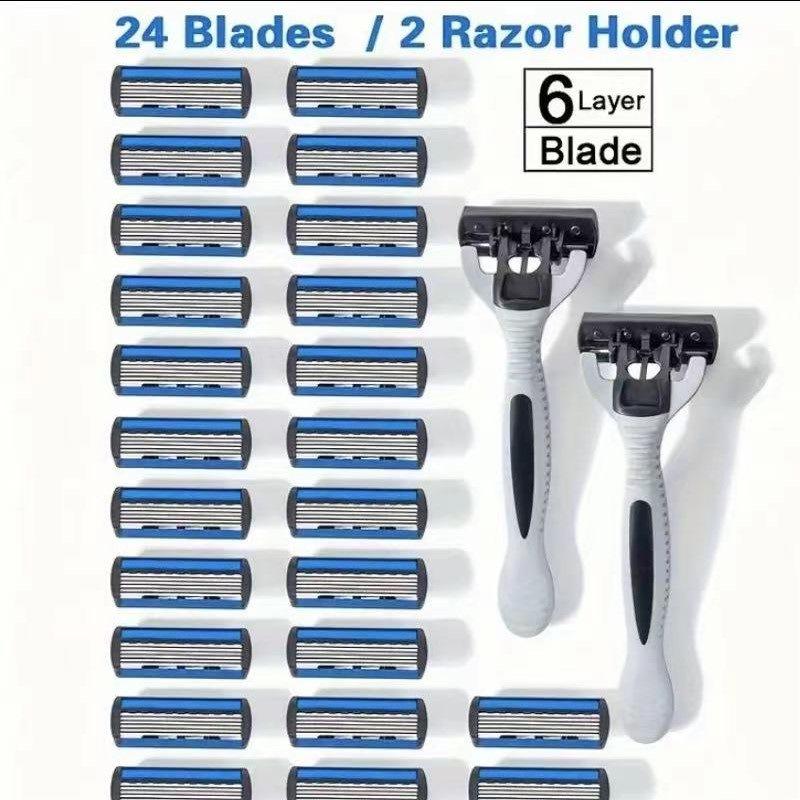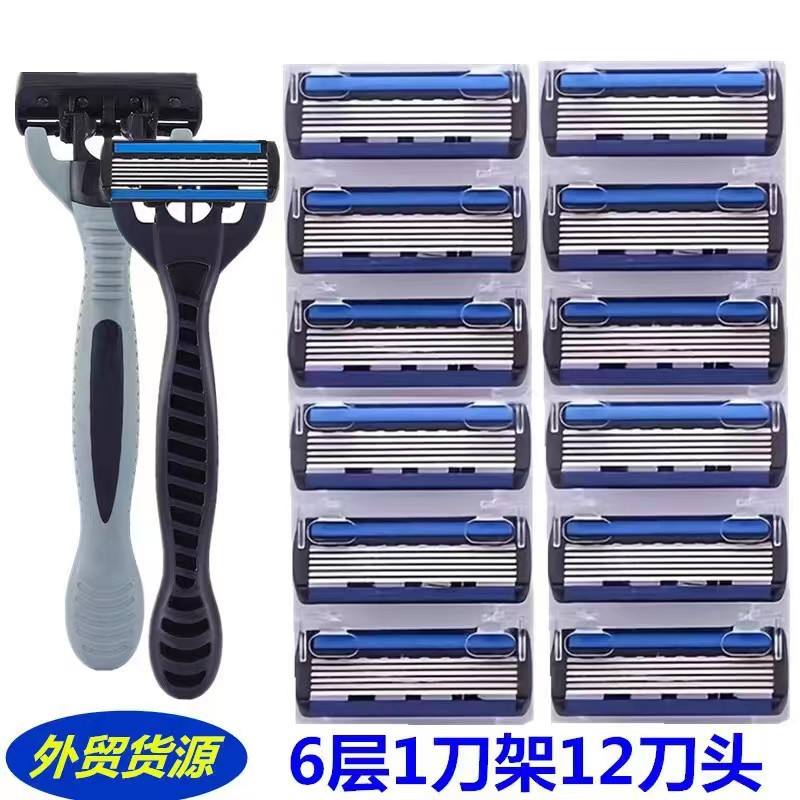Manual Razor 6 Layer Blade Stainless Steel Handle For Men Face Shaving Razor Holder Set