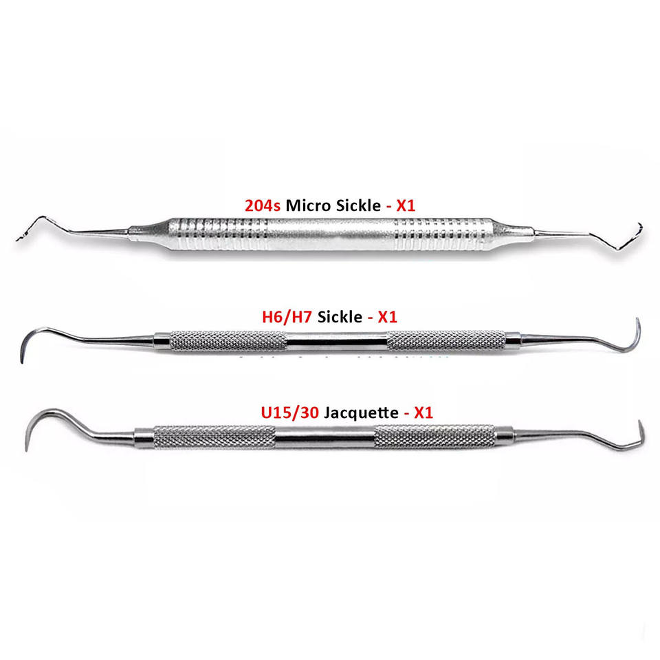 Manual Sickle Scaler Set 3 Dental Stainless Steel Hand Instruments for Periodontal Hygiene and Pick Tool Surgical Instrument