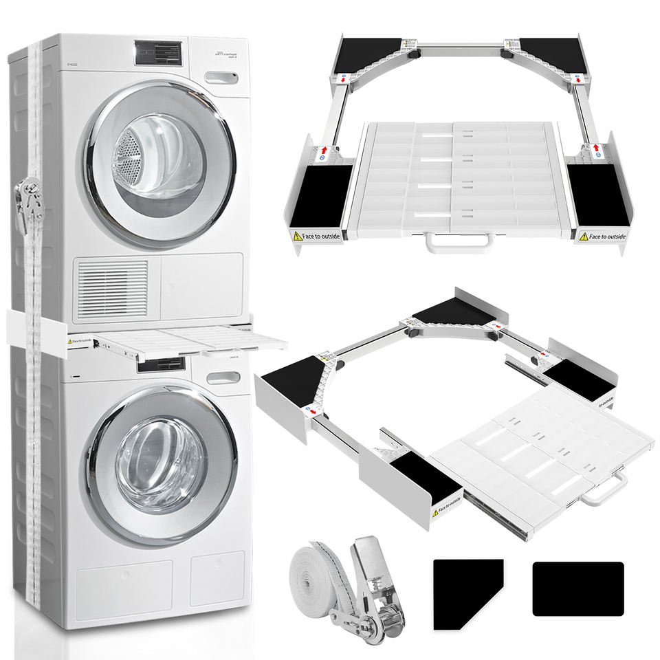 Manual Universal Washer Dryer Stacking Kit with Adjustable Heights (24"-29") Washing Machine Base for Hotel Use