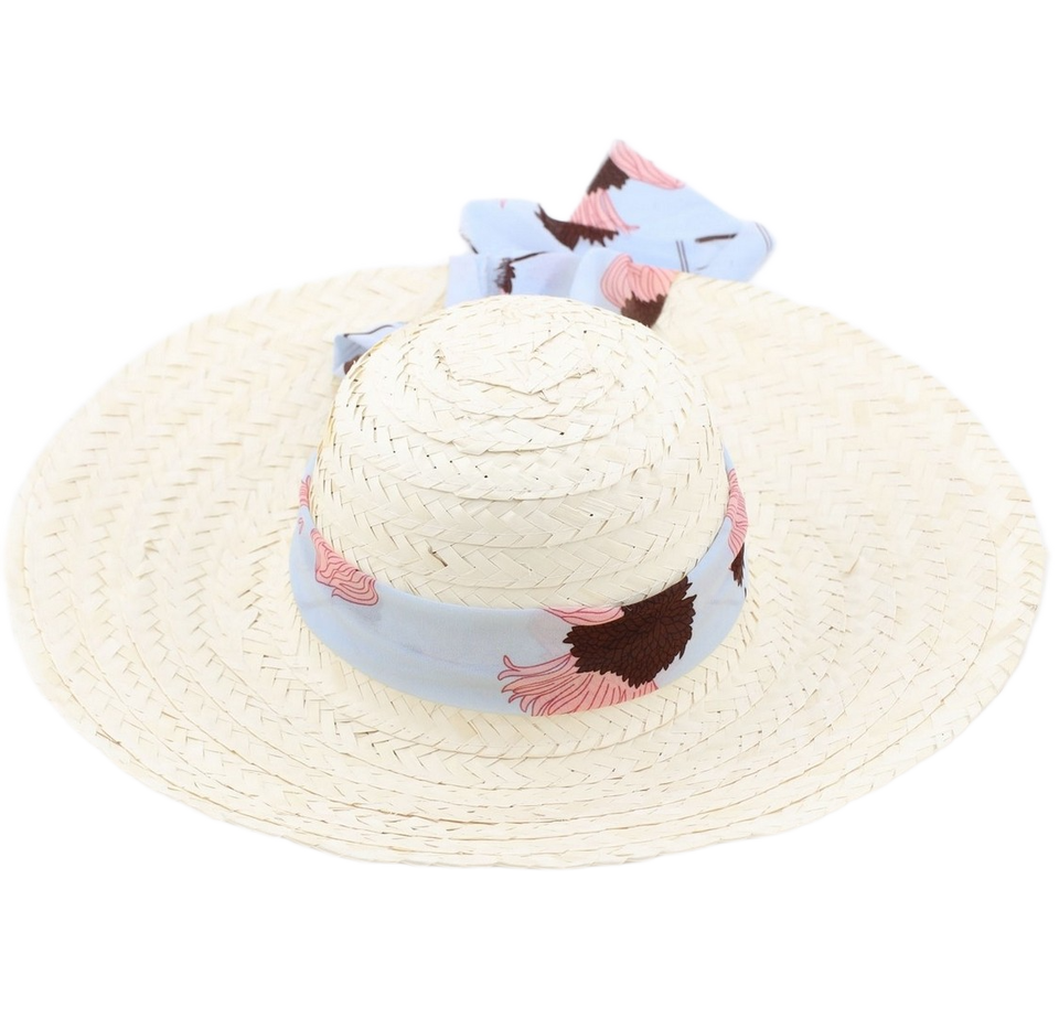 Manufactory Custom Women Latest White Flower Printing Custom Design Women Straw Beach Hats