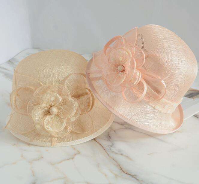 Fashion Women's Wedding Church Hats-Flaxen Dobby Fancy Sinamay Beach & Outdoor Adjustable 3D Embroidery Party Hats