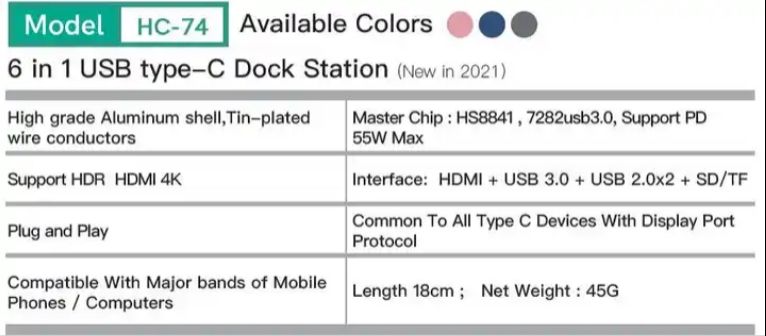 Cable Type:1-to-6 USB Type-C Hub