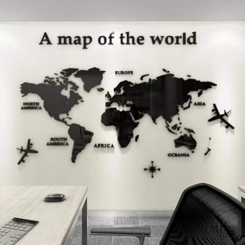 Manufacture Hot sale Custom Modern Wall Mounted Acrylic 3D World Map Murals Stickers