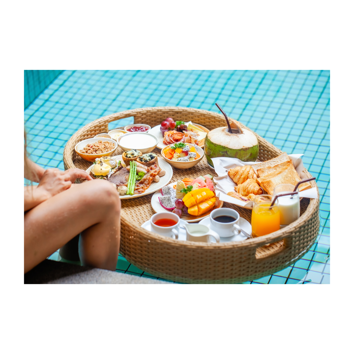 Manufacture Plastic Floating Breakfast Water Basket Outdoor Rattan Pool Serving Tray for Resort Wicker