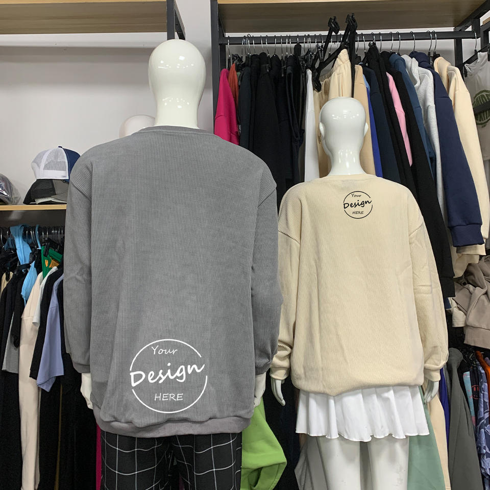 Manufacture Sale Streetwear Pullover Custom Ribbed Hoodies Muti-colored Embroidery Logo Crew Neck Blank Unisex Cord Hoodie