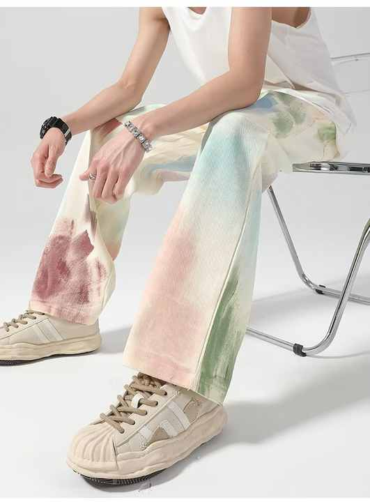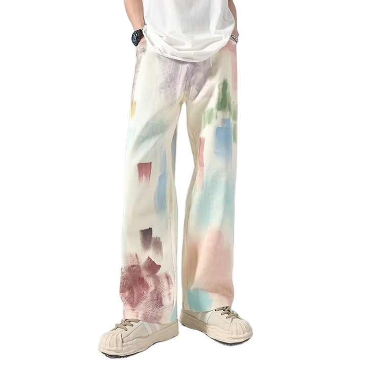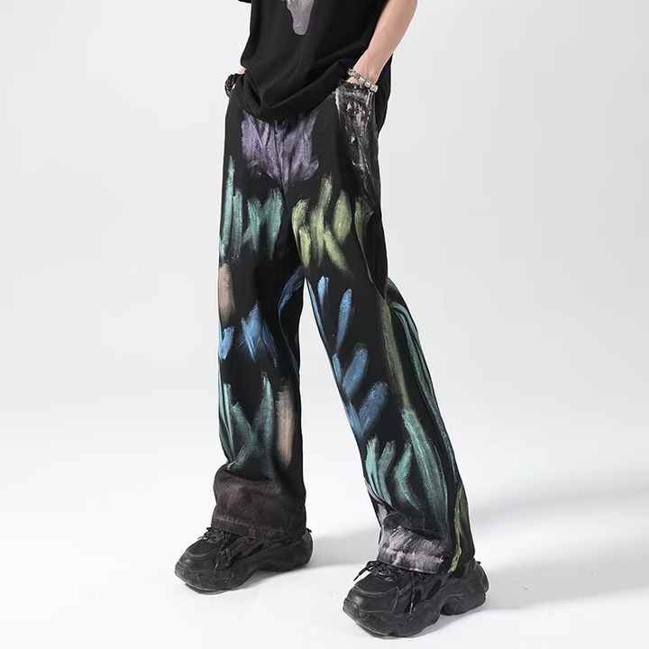 Manufacture Stitchmode High Quality Fashion Polyester Loose Straight Casual Pants Washed Denim Jeans Men