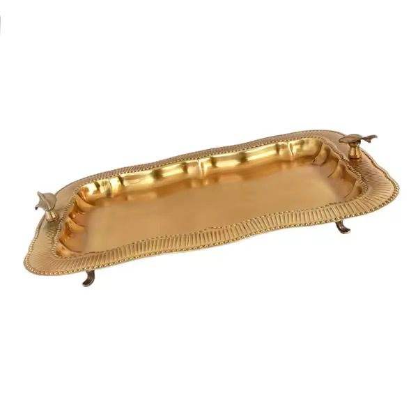 Manufacture Wholesale Custom Antique Metal Restaurant Tableware Tea Cup Serving Tray with Handle Birthday Fruit Tray