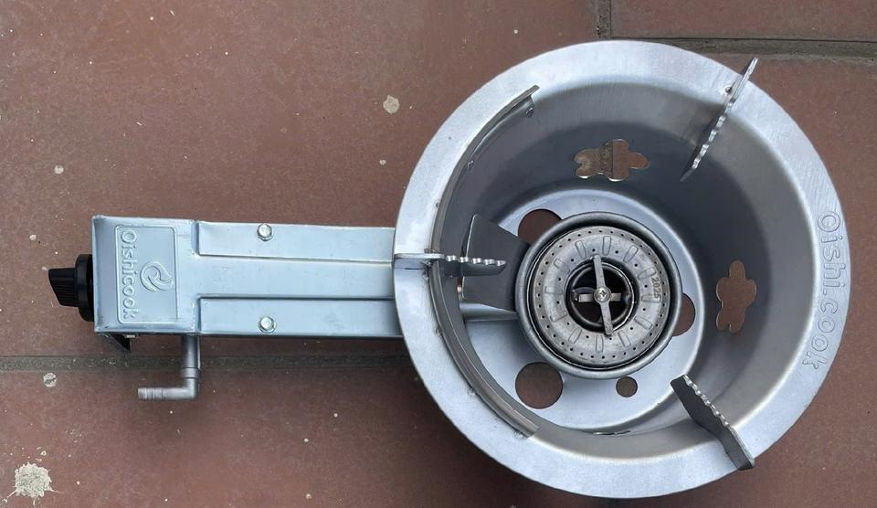 Manufactured in Vietnam, this gas stove has a sleek stainless steel finish.