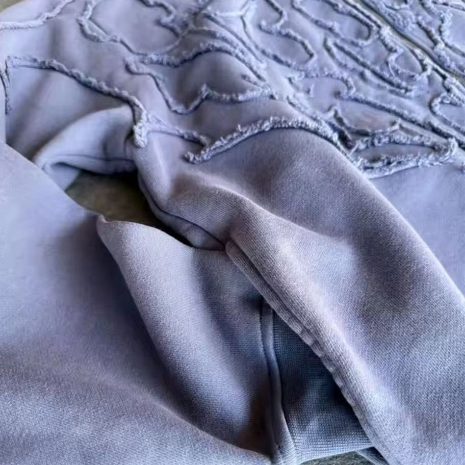 Manufacturer 400GSM Distressed Embroidery Cropped Hoodie Men Comfy Washed Cozy 100% Cotton Waffle Fabric Silk Screen Printed