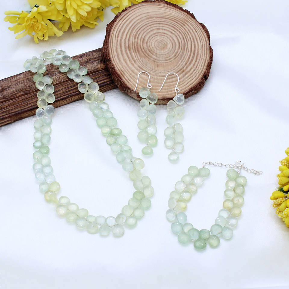 Manufacturer 925 Sterling Silver Natural Prehnite Gemstone Necklace, Earrings & Bracelet Handmade Jewelry Set Wholesale