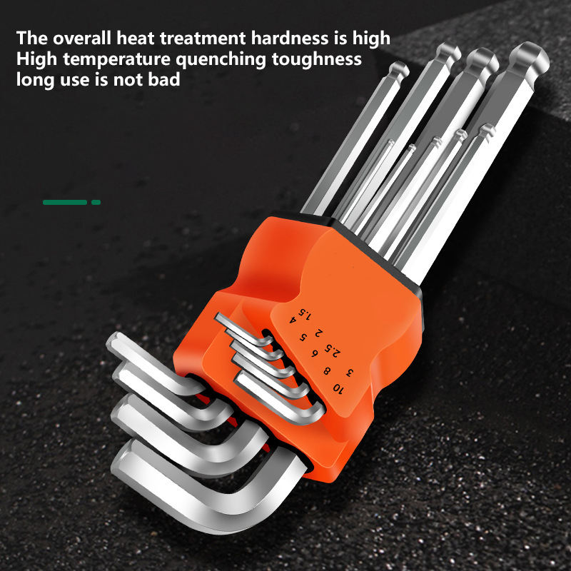 Manufacturer 9Pcs Long Ball Key Wrench Set L Wrench Set Durable Allen Wrench Hand Tools Set
