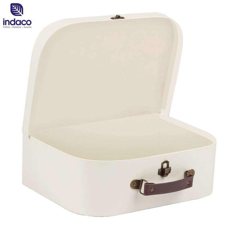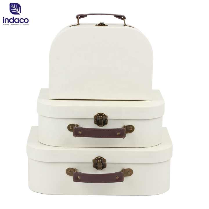 Manufacturer Beige Color Stitching Handmade Craft Paper Box Cardboard Suitcase with Handle