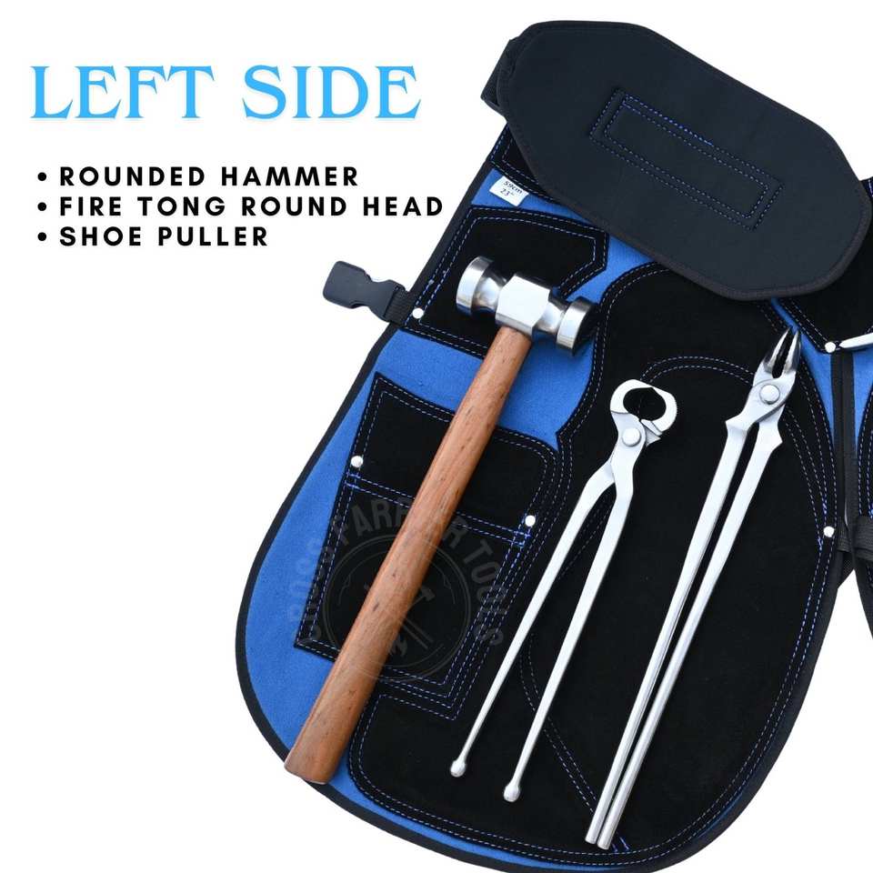 Manufacturer Blacksmith Farrier Tool Set with Heavy Duty Hammer Shoe Puller Farrier Apron Fire Tong Crimper and Round Head Tong