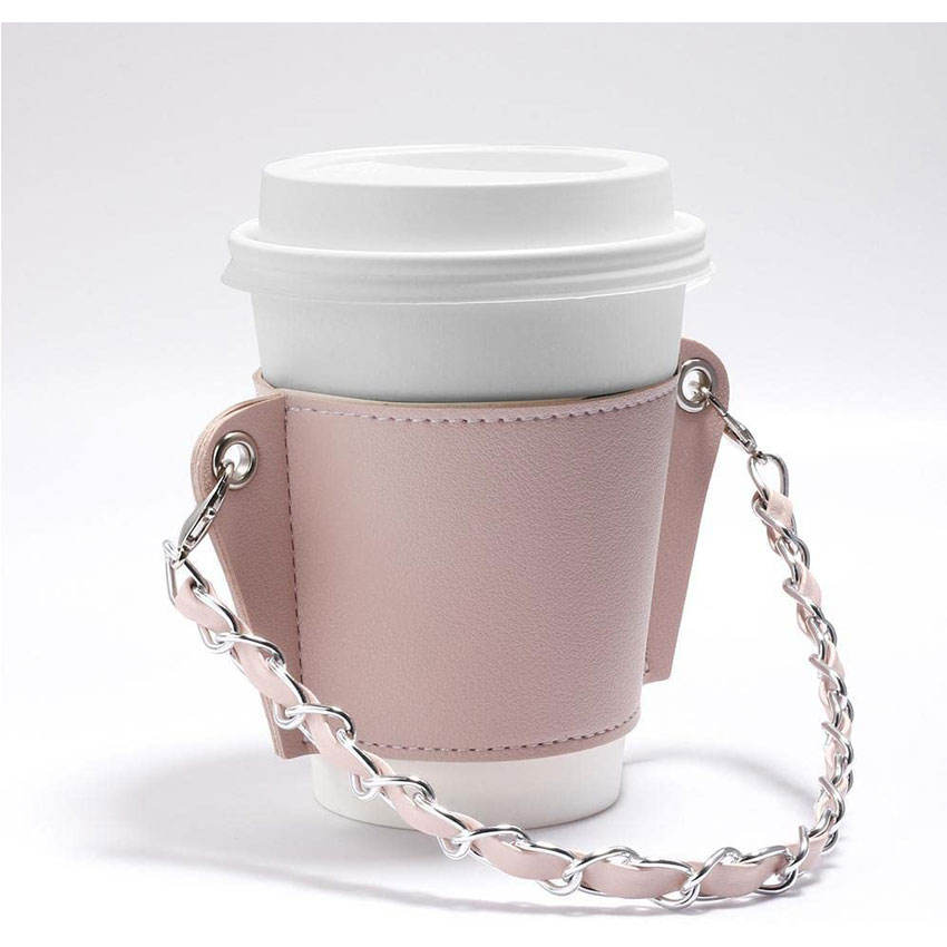 PU leather coffee cup sleeve chain