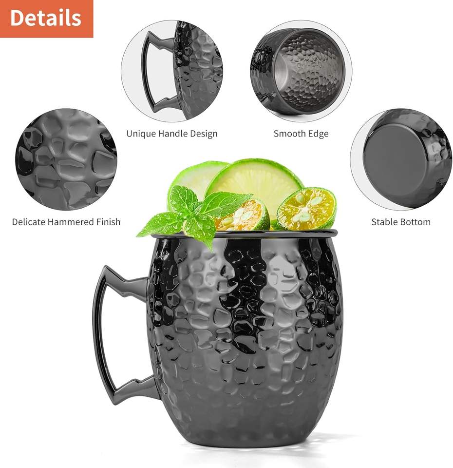 Manufacturer Bulk Hammered Black Coating Stainless Steel Moscow Mule Mug Cups for Cold Drinks Coffee Beer Wine Chilled Drink