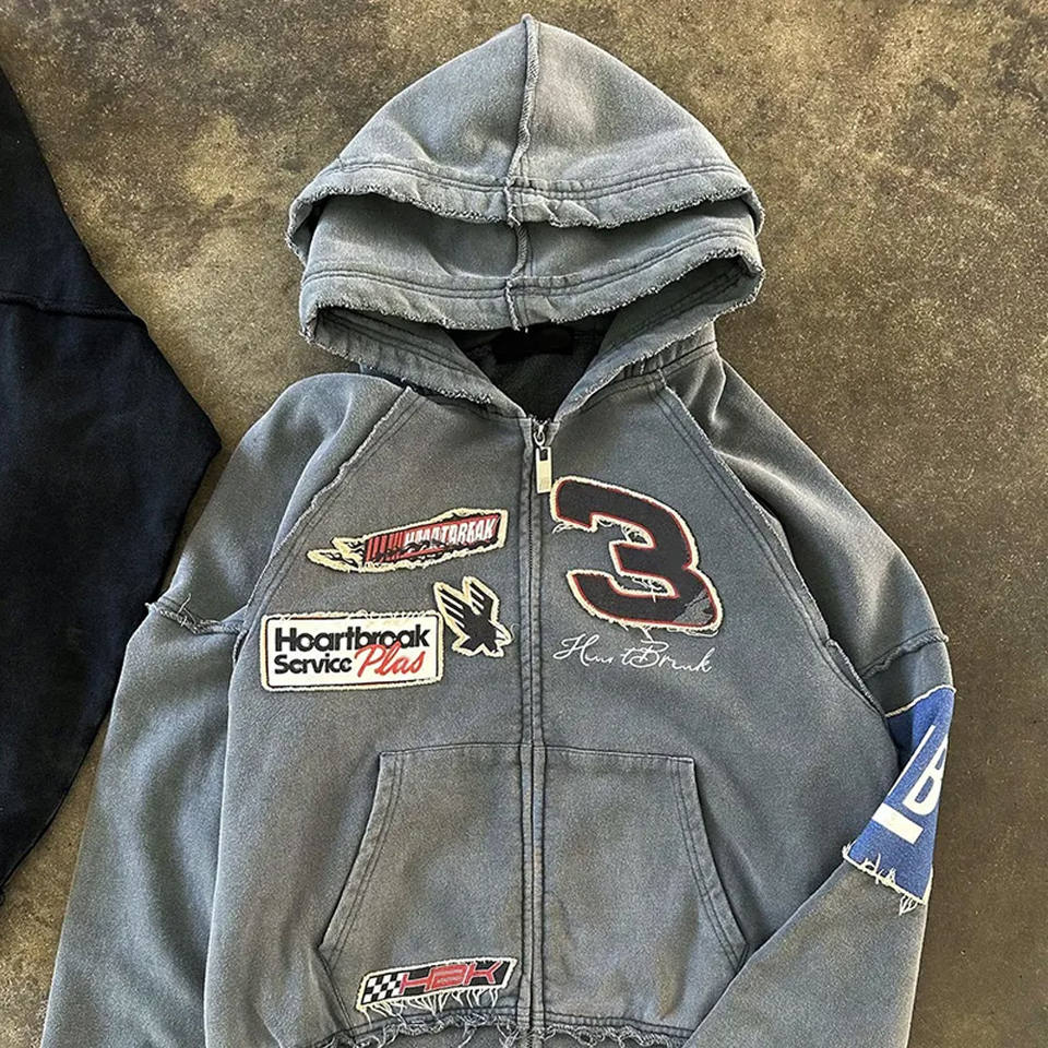 Manufacturer Custom 400 Gsm Zip Hoodie For Men Sun Fade Embroidery Patch Vintage Distressed Acid Wash New Style Zipper Hoodie
