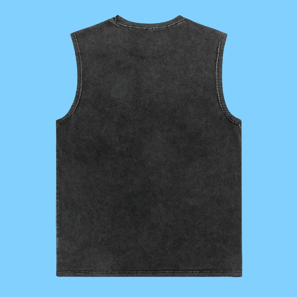 Manufacturer Custom Acid Washed Vintage Sleeveless T-Shirt for Men 100% Cotton Knitted Streetwear Vest Tank Top Letter Pattern
