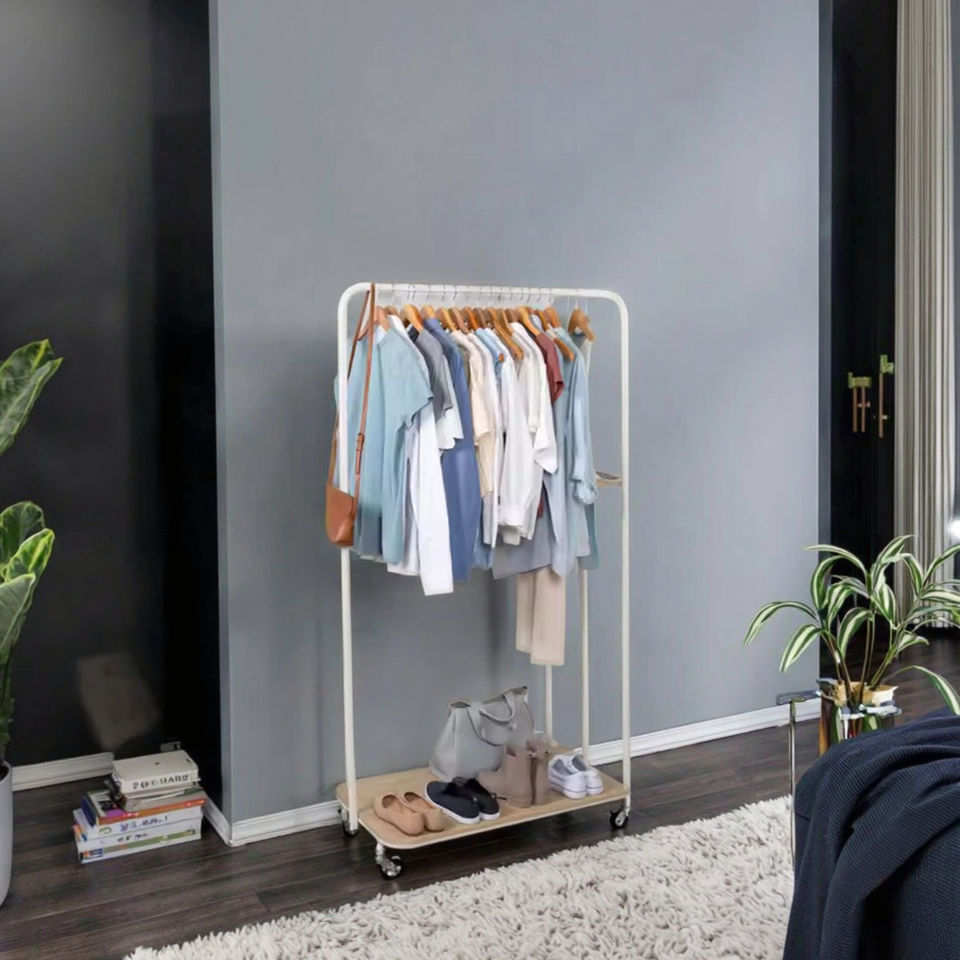 Manufacturer Custom Heavy-Duty Double-Tier Steel Rolling Clothes Rail Rack Simple Floor Garment Hanging Rack for Living Room