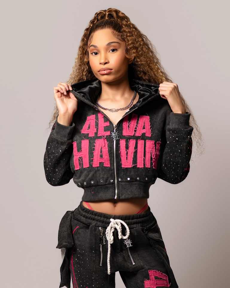 Manufacturer Custom Label Heavyweight Cropped Zip Up Hoodie & Shorts Set Slim Fit Distressed Applique Tracksuit