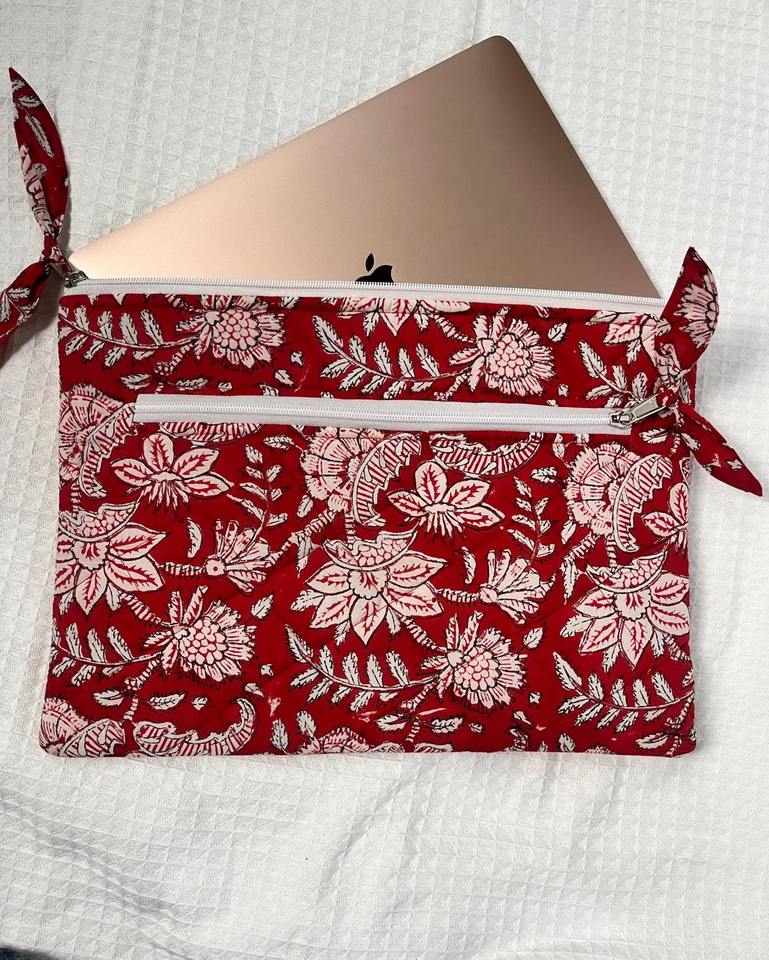 Manufacturer Custom Logo Handmade Quilted Cosmetic Bag Portable Corduroy Flower Laptop Bag Soft Cotton Makeup Bag