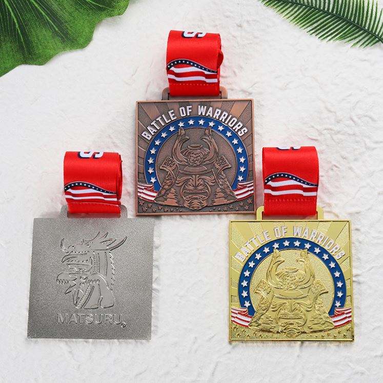 Manufacturer Custom Medal Metal Zinc Alloy Martial Arts Medals Square Gold Silver Copper Plated 3D Enamel Battle Sports Medals
