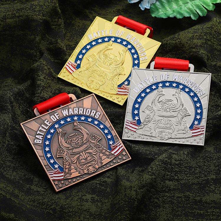 Square Gold Silver Copper Plated 3D Enamel Battle Sports Medals