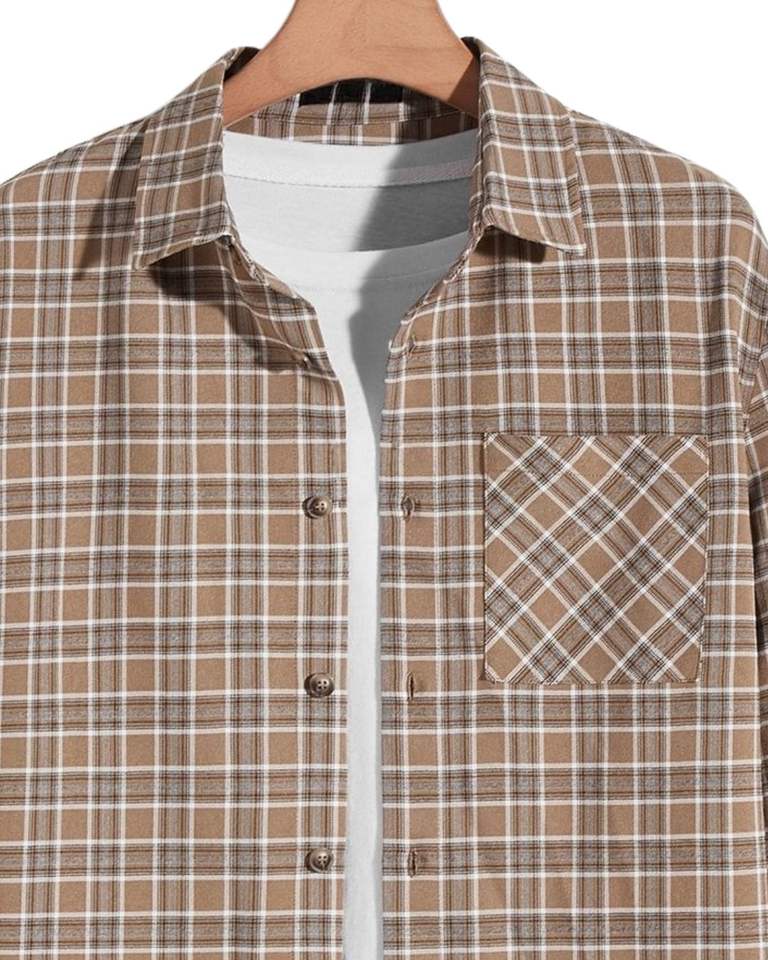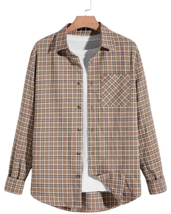 Manufacturer Custom Mens Brown Check Flannel Shirt Button Down Long Sleeve Casual Plaid Shirt Chest Pocket Soft Warm Daily Wear