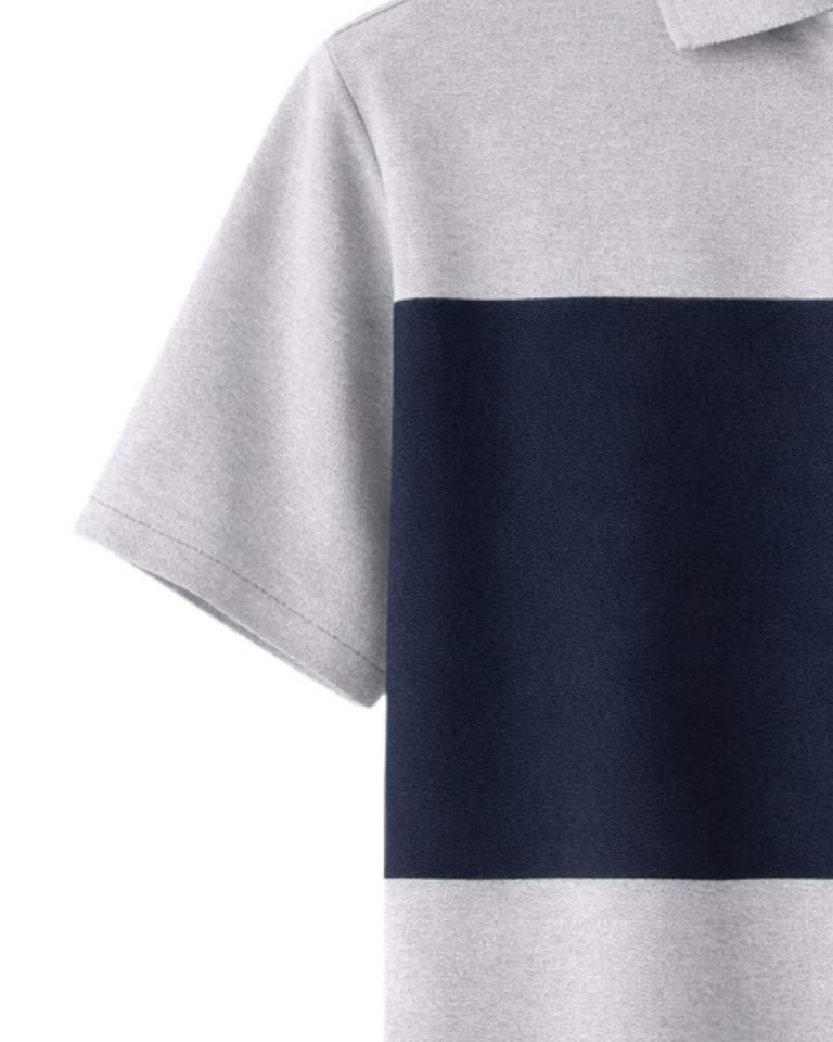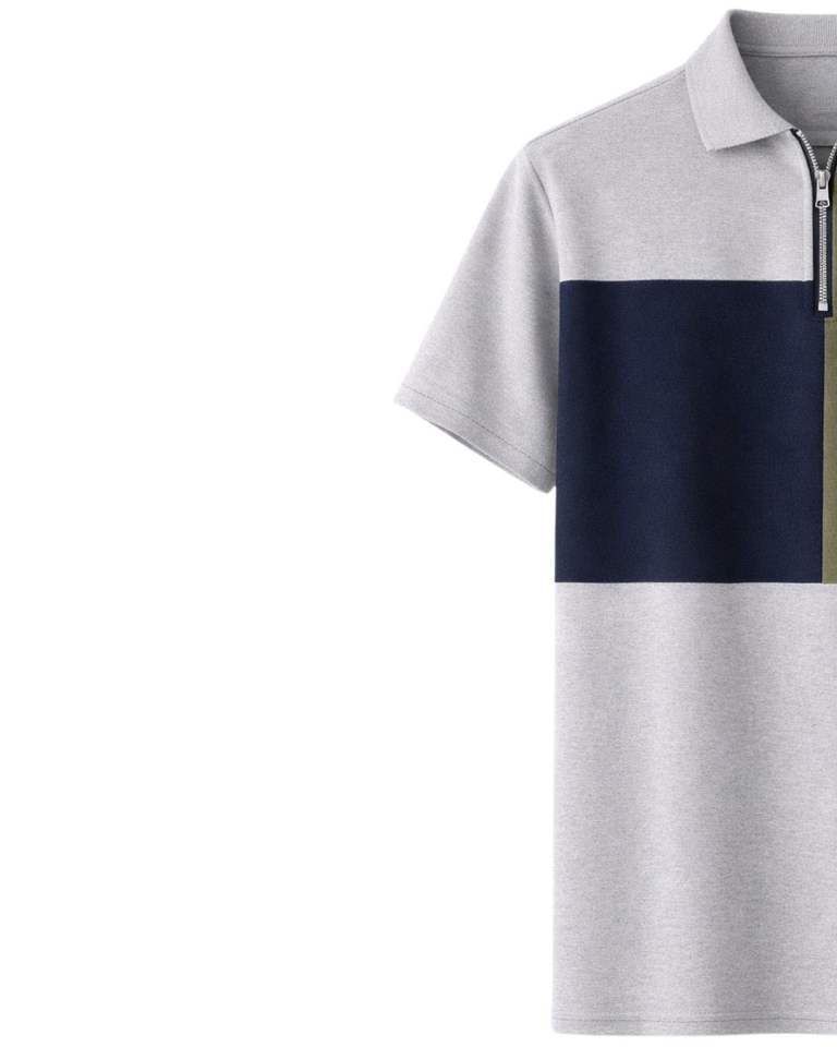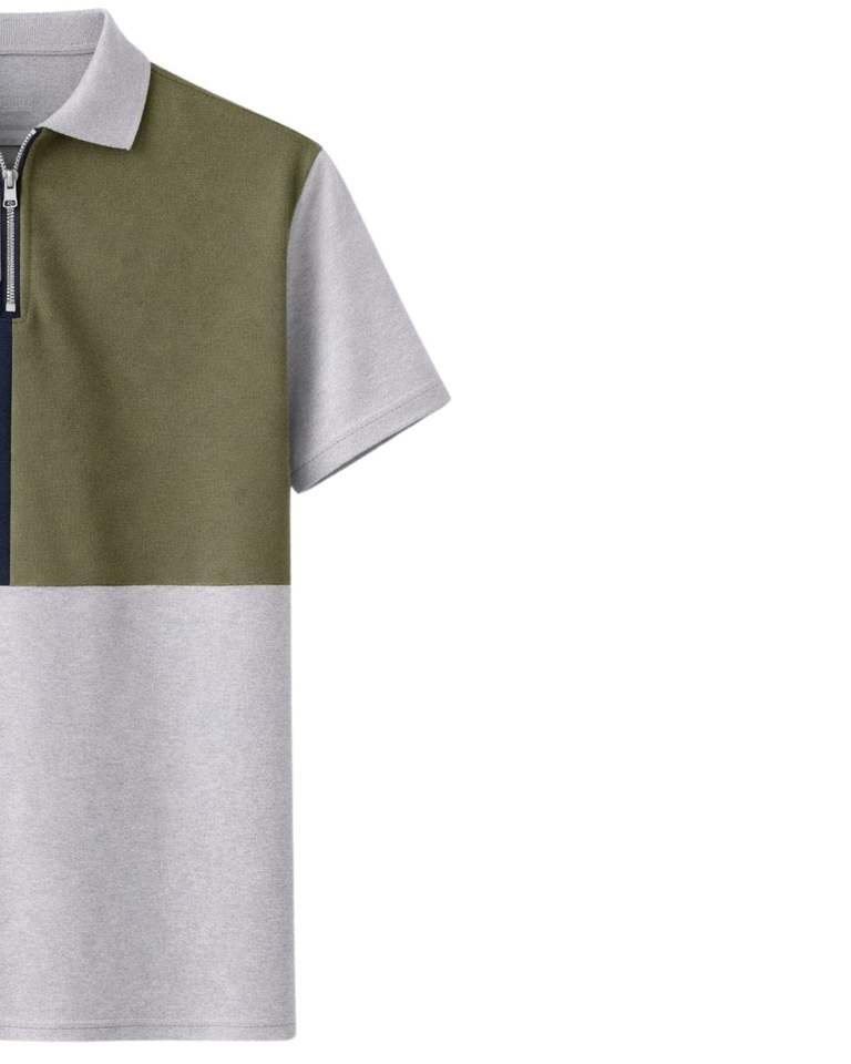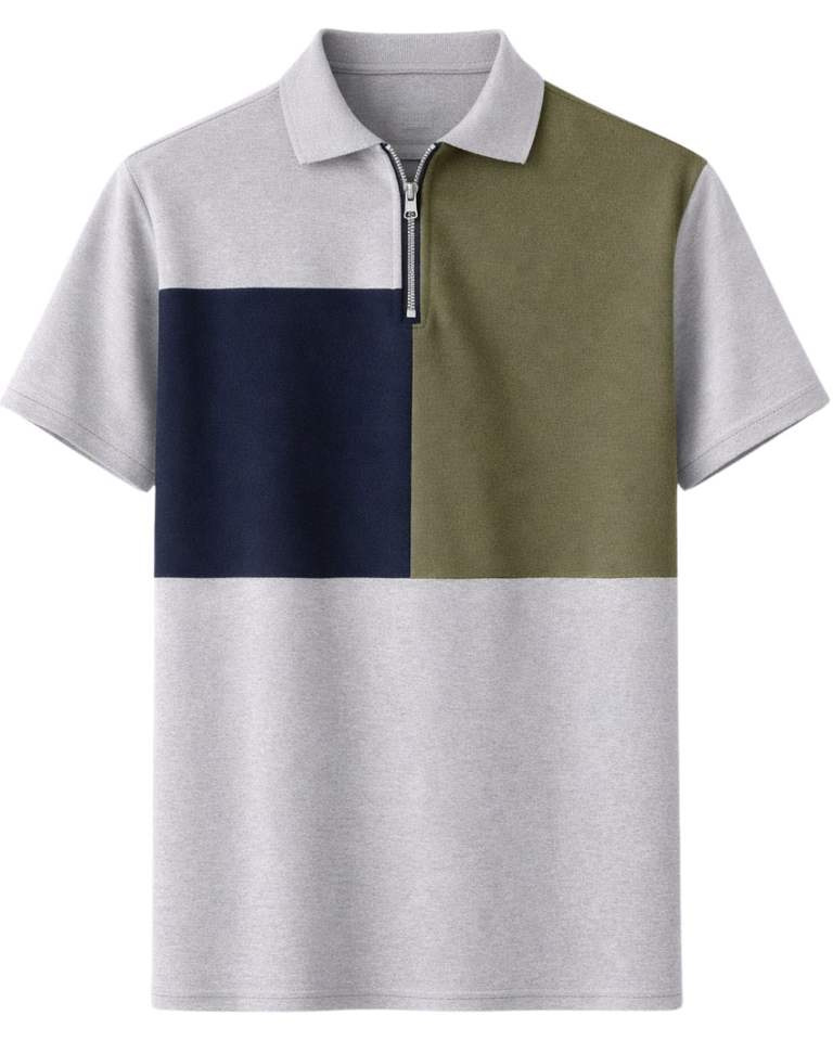 Manufacturer Custom Mens Half Zip Polo Shirt Light Grey Navy Blue And Olive Green Color Block Short Sleeve Casual Knit Top OEM