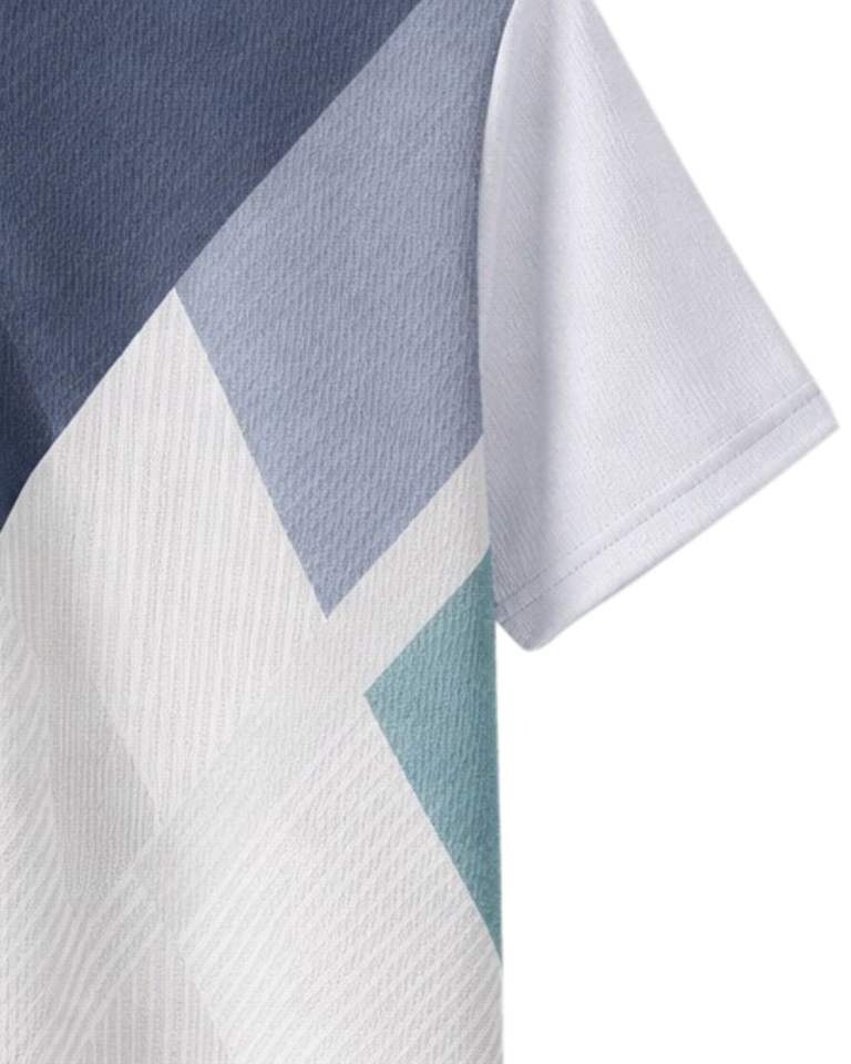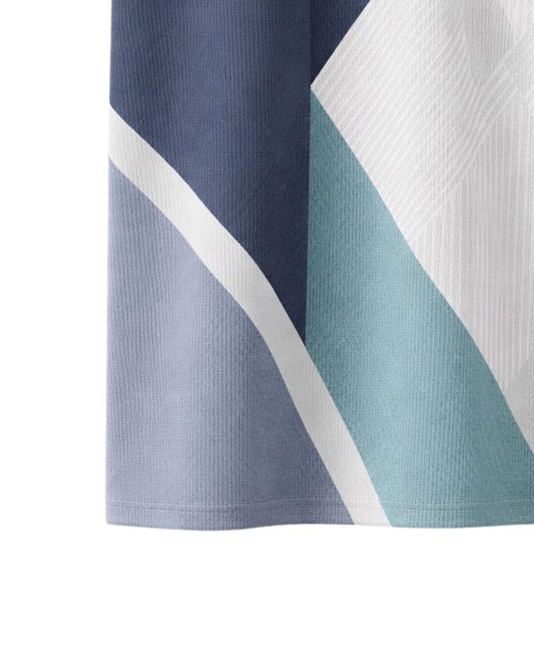 Manufacturer Custom Mens Half Zip Polo Shirt Navy Blue Light Blue White And Teal Color Block Short Sleeve Casual Knit Top OEM