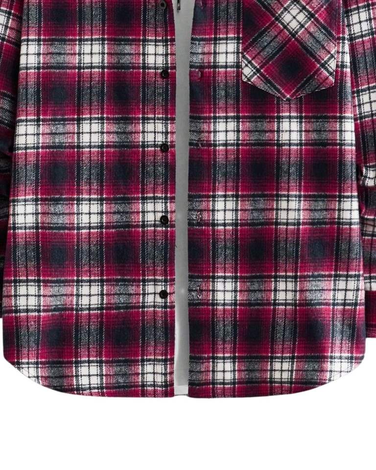 Manufacturer Custom Mens Plaid Flannel Shirt Burgundy White Check Button Down Long Sleeve Casual Winter Shirt With Chest Pocket