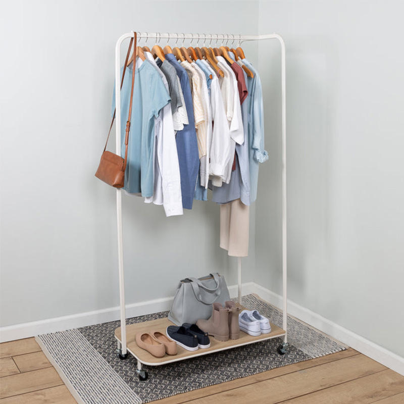 Manufacturer Custom Heavy-Duty Metal Rolling Clothes Rail Rack Simple Floor Garment Hanging Rack for Wardrobe & Bathroom