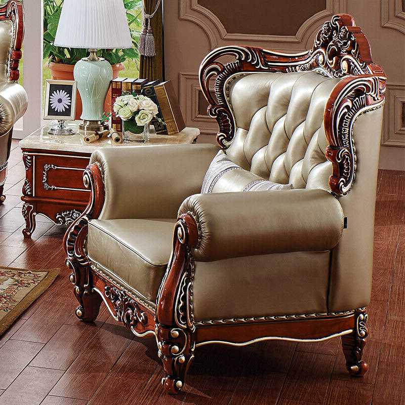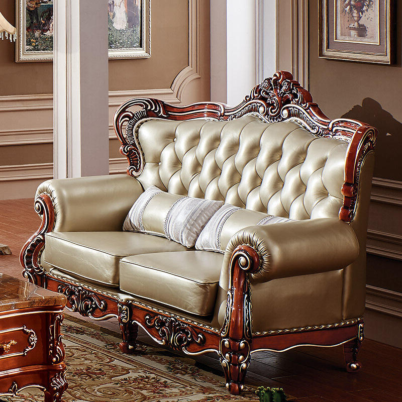 Manufacturer Custom New Design European Luxury Style Antique Sofa Classic Golden Genuine Leather Villa Sofa Sets