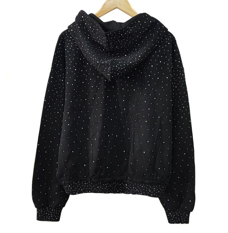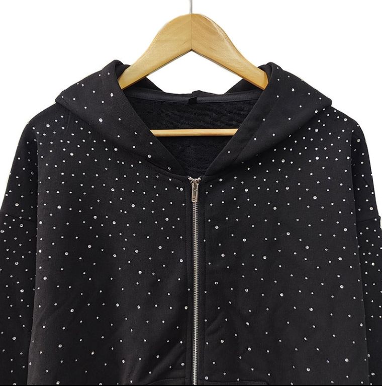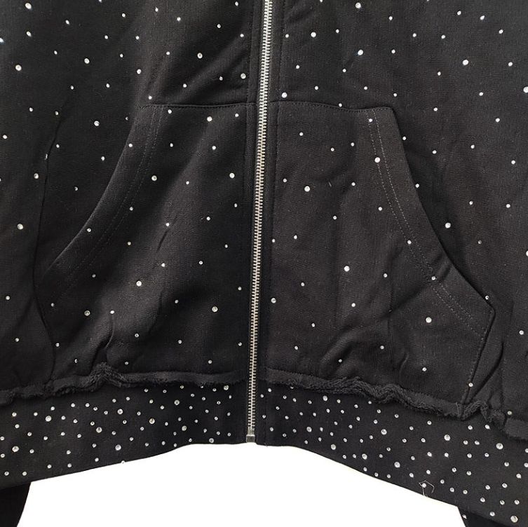 Manufacturer Custom Oversized Diamond Rhinestone Hoodie 100 Cotton Acid Wash Heavyweight Streetwear Zip up Hoodie Men
