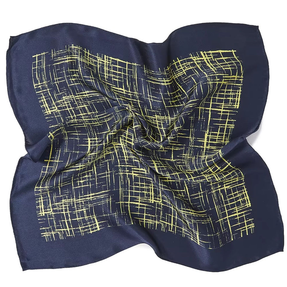 Manufacturer Custom Print 100% Silk Hand Printing Navy White Geometric Square Scarf Pochette Wholesale Rate OEM Custom