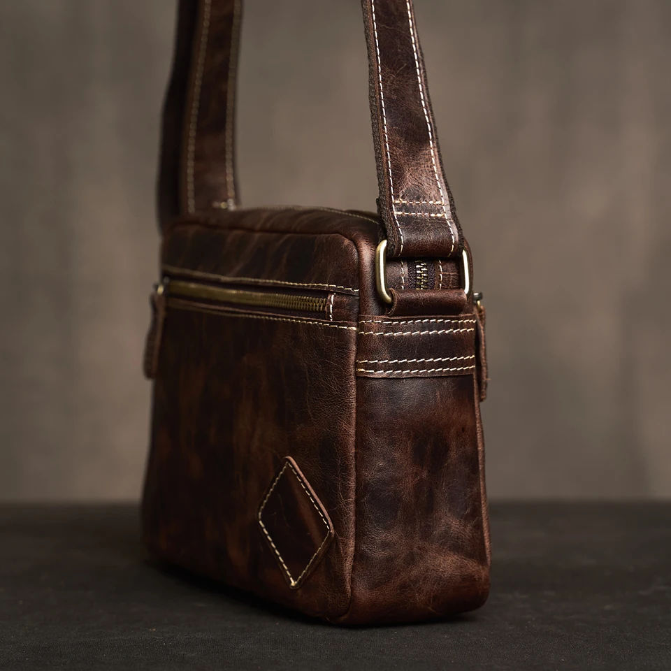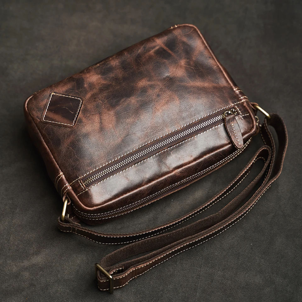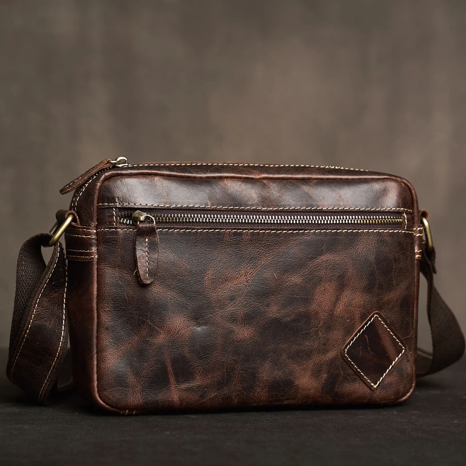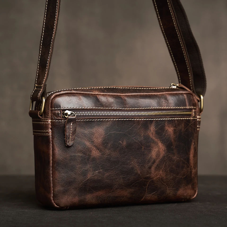 Manufacturer Custom Stylish Luxury Premium Genuine Real Cowhide Leather Crossbody Shoulder Messenger Bag for Men