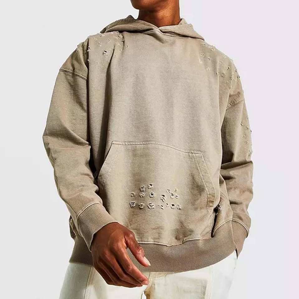 Manufacturer Custom Vintage Distressed Embroidery Patch Hoodies Men Zip up Hoodie Removable Sleeve men's hoodies