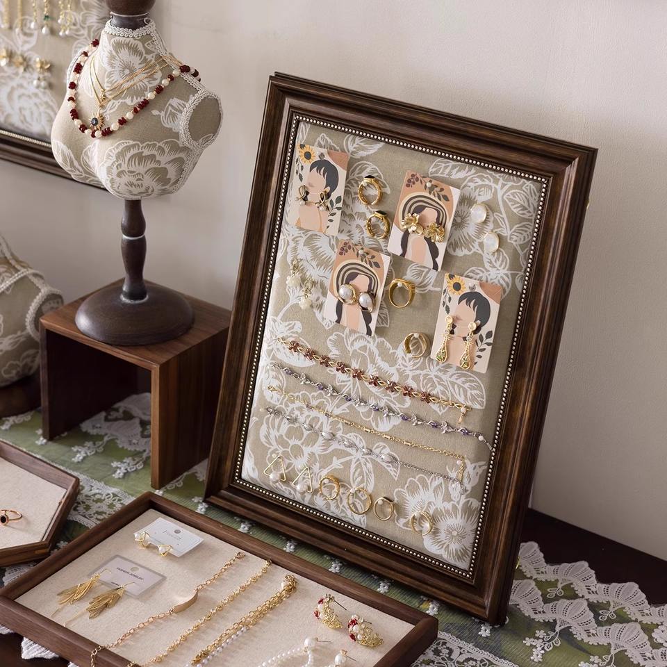 Manufacturer Custom Wholesale Gold Vintage Flannelette Necklace Earring Display Rack Set